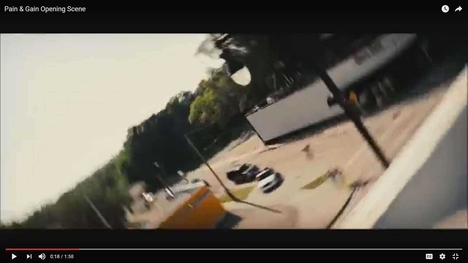 This shot is a POV (Point of View) shot of Wahlberg turning his head around from being upside down as he has spotted the police cars and vans pulling up to the side of him. The shot and the turning of the camera is done very realistically.